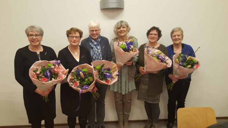 Ons vrouwenkoor prijst zich gelukkig met veel ervaren zangeressen. Vier leden zingen zelfs al 25 jaar bij het koor. Wie zijn het?