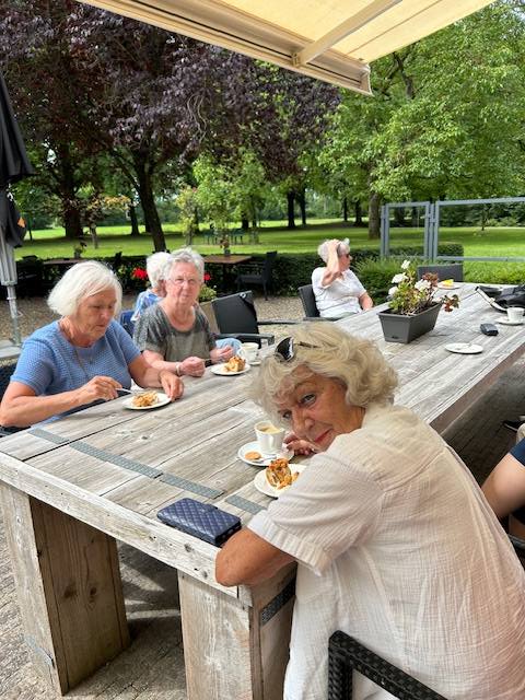 De vrouwen van Phoenix stapten op de fiets voor een gezellige dag vol ontspanning en plezier. ’s Morgens genoten ze eerst van koffie in de tuin van Fletcher in Eerbeek, gevolgd door een rondleiding door de tuinen van De Modderkolk in Loenen.